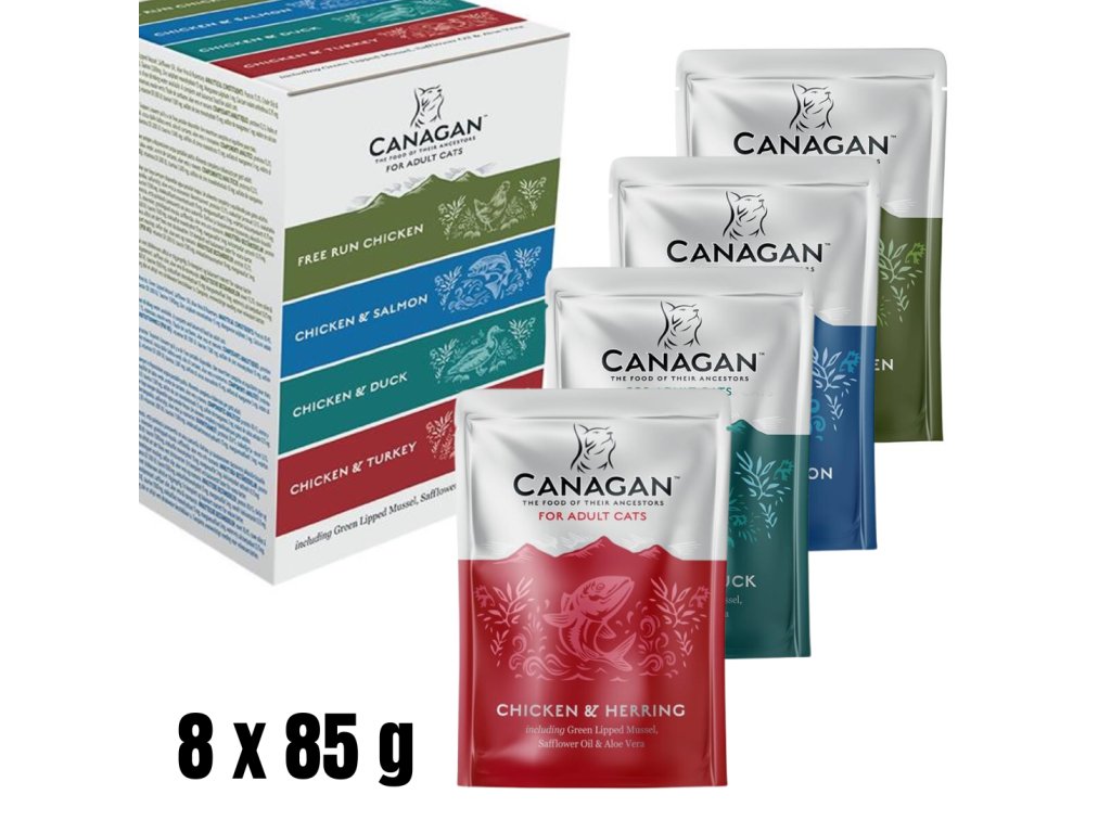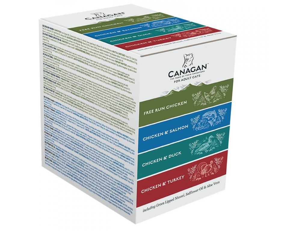 Canagan Multipack – obsahuje kompletní krmiva pro dospělé kočky v recepturách bez obilovin. Nejlepší kousky masa (v každé kapsičce je až 80 % živočišných surovin) pro zdraví a skvělou chuť krmiva. Zelená škeble navíc představuje přirozený zdroj glukosaminu a pomáhá pečovat o zdravé klouby vaší kočky.