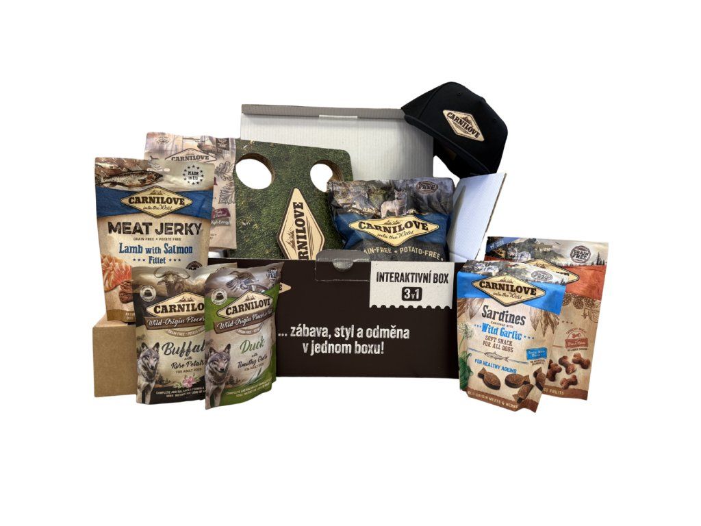Set krmiva a pochoutek Carnilove pro psy za skvělou cenu a k tomu hlavolam pro chlupáče a kšiltovka pro páníčka.
