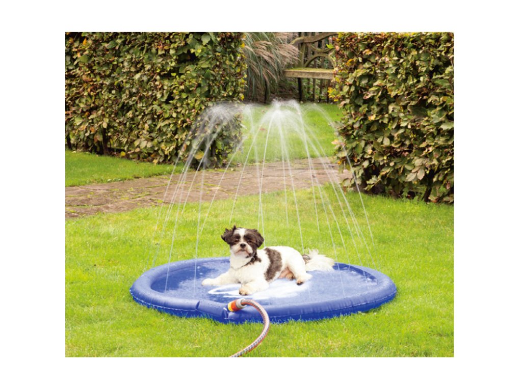K osvěžení je potřeba jediné, a to napojit podložku na vodní hadici. Postřikovací rohož poskytuje psům příjemné ochlazení, protože po jejím obvodě jsou různě velké otvory, ze kterých po připojení uzávěru k vodní hadici vystříkuje voda. Pes si musí jen lehnout na podložku a užívat si trysky chladicí vody.