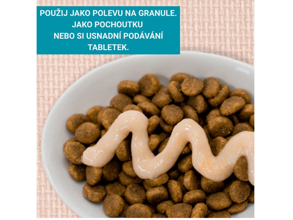 - lze použít jako polevu na vlhké i suché krmivo