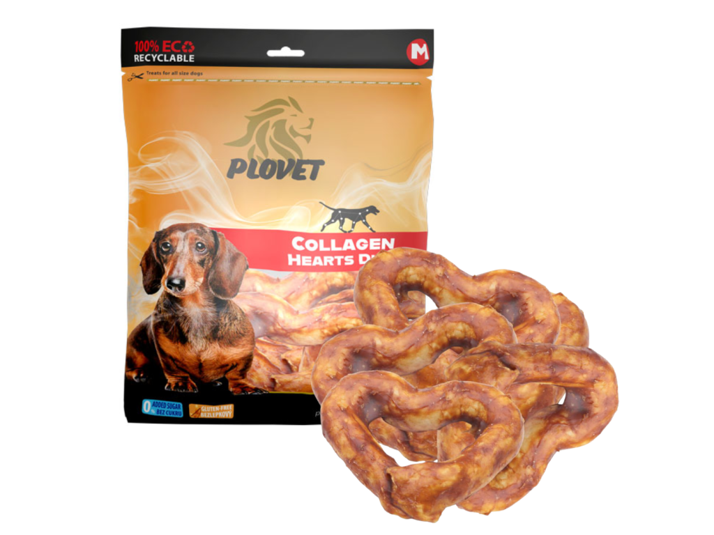 Tento prémiový pamlsek Plovet ve tvaru srdce je nejen chutnou, ale především funkční odměnou. Jedná se o tvrdou pochoutku, která uspokojí přirozenou potřebu psa žvýkat a zároveň podporuje dentální hygienu. Obsahuje dominantních 75 % kolagenu, který tvoří základní stavební kámen kloubů a pojivových tkání. Pamlsek je obohacen o lahodné kachní maso (18 %) pro neodolatelnou chuť. Složení je bezlepkové a má nízký obsah tuku. Balení obsahuje 5 ks.