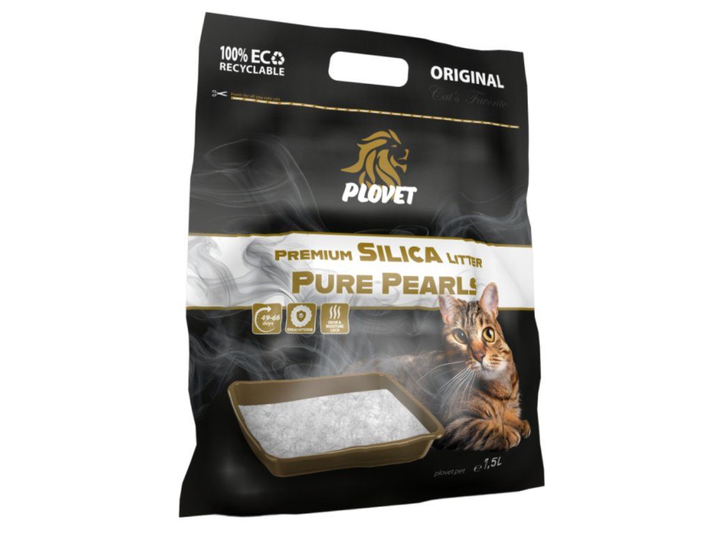 Silikátová podestýlka pro kočky s ultra-absorbční schopností, která pohlcuje zápach, je bez parfemace, bezprašná a bez obsahu alergenů.