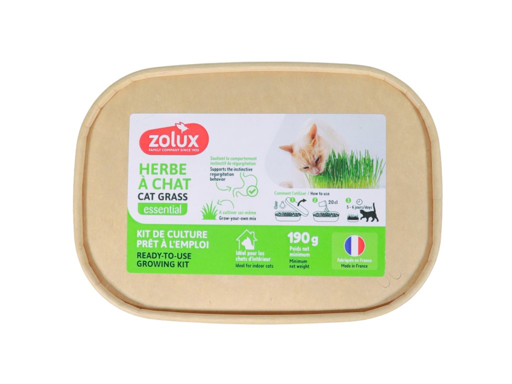 Kompletní sada pro vypěstování trávy během několika dní. Ideální výbava pro kočky chované uvnitř i venku.